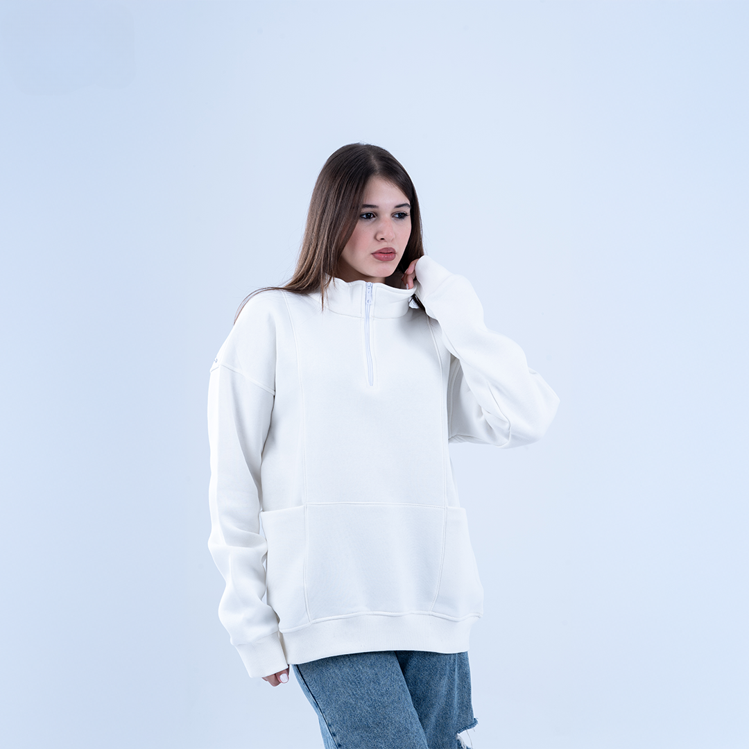 White Bloom & Blossom Half Neck Sweatshirt